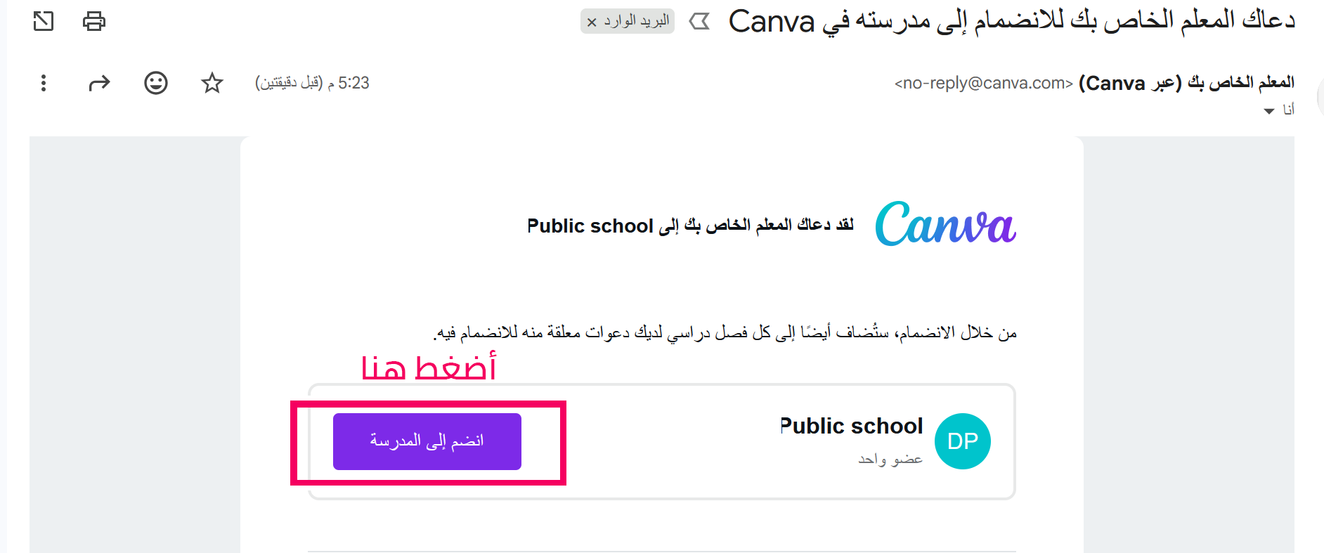سوف يتم أرسال لك دعوة للانضمام الى صف ( فريق ) في كانفا على ايميلك